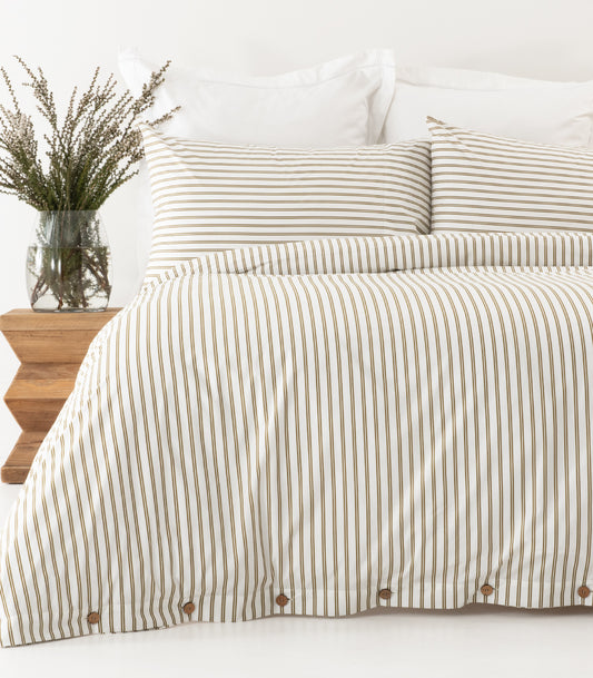 • Percale Quilt Cover Set - Limited Edition - Tandem Stripe Pine