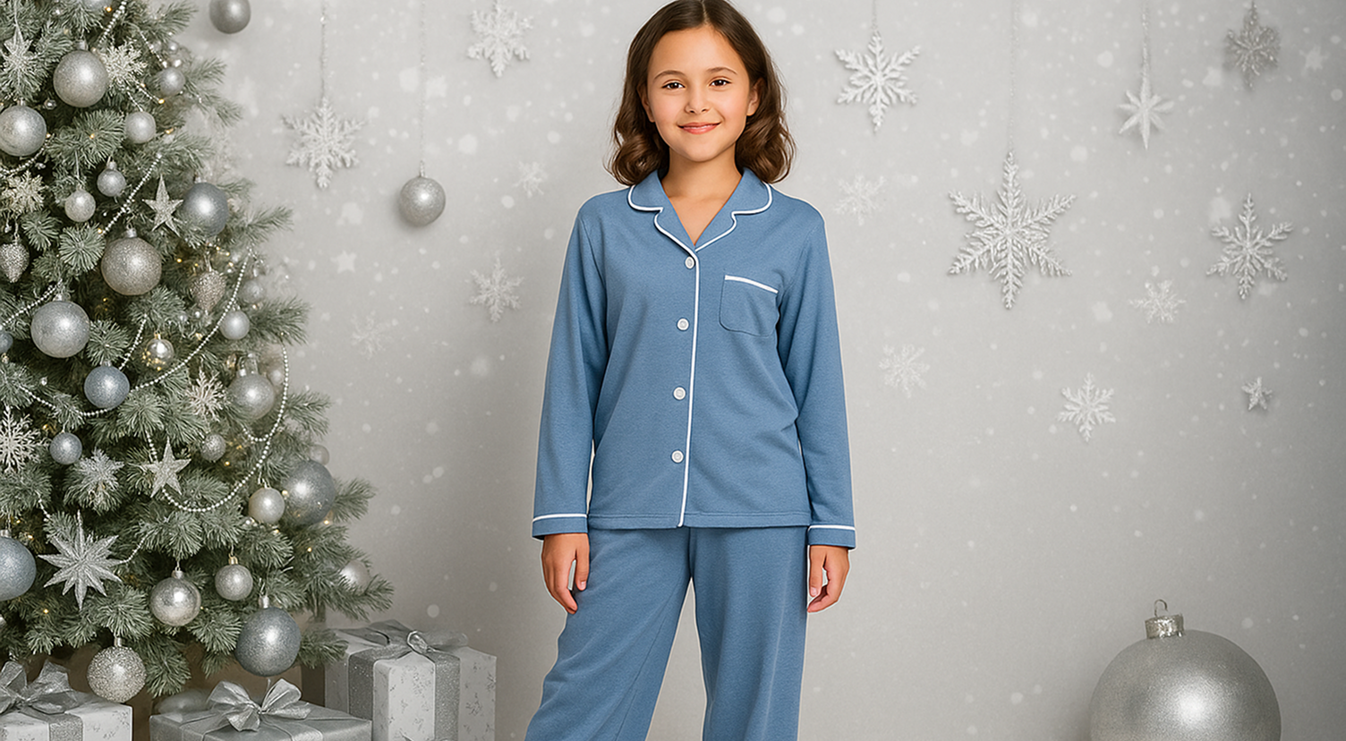 • Kids Jersey Long PJ Set - Ocean Blue Melange