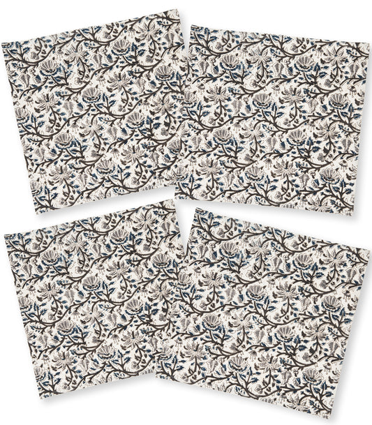 • Napkins - Kalamkari Block Print (4 Pack) - Blue/Grey